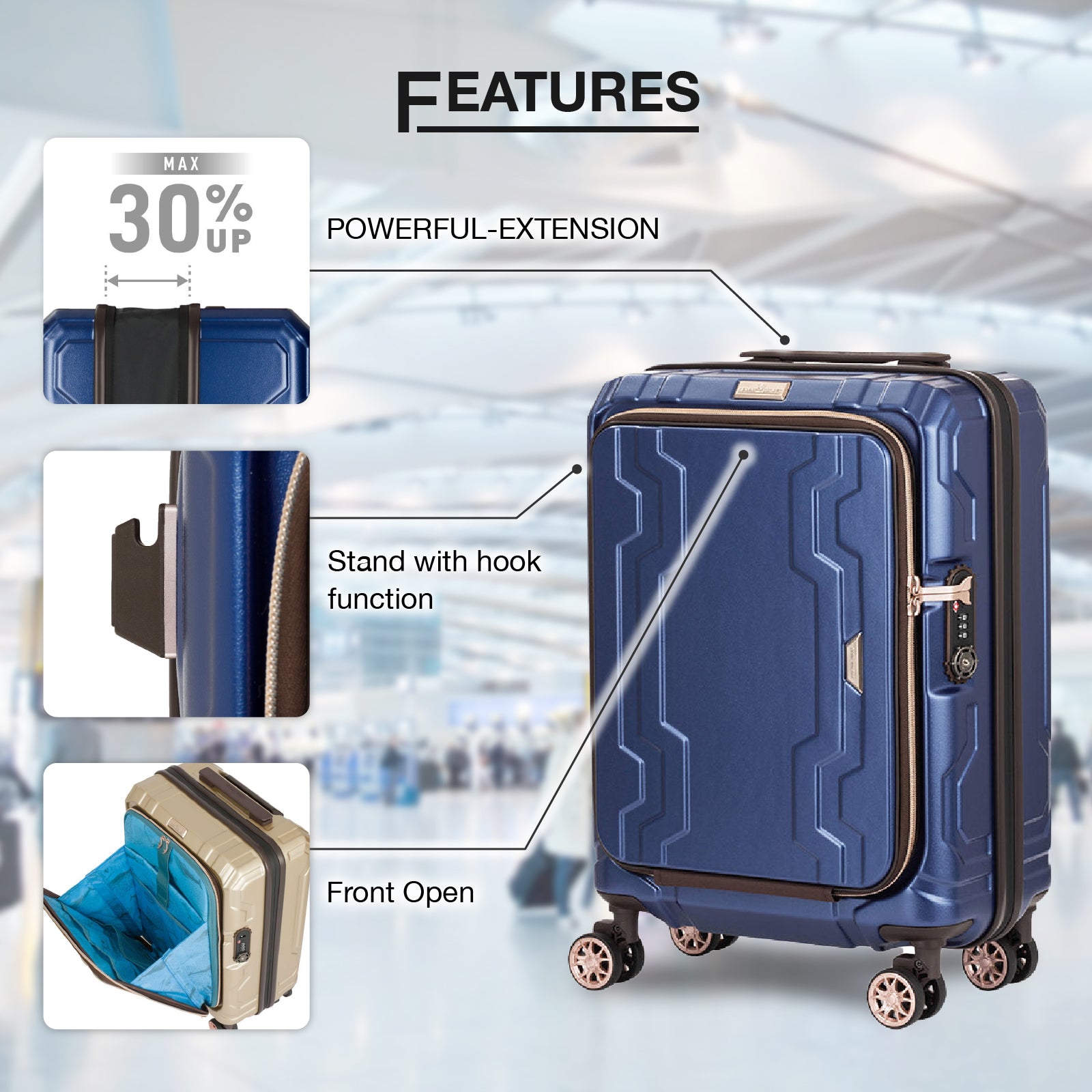 ● 360 dual cushioned spinner wheels with built-in coil spring for a smooth gliding experience.
