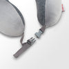 1. Place pillow around neck and secure with fastener, adjusting the strap to the desired length. To remove, press the top and bottom of the fastener to release.