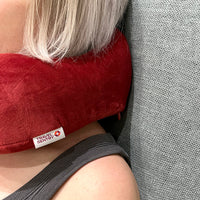 central support in the neck. This pillow is made from a soft, velvet